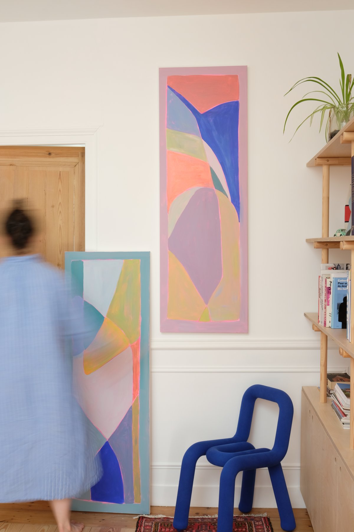 Depuis 2022, les tableaux occupent une place centrale dans sa pratique, où elle explore le mouvement à travers la trace et la couleur, utilisant pastels et alliances chromatiques pour capturer cette dynamique.