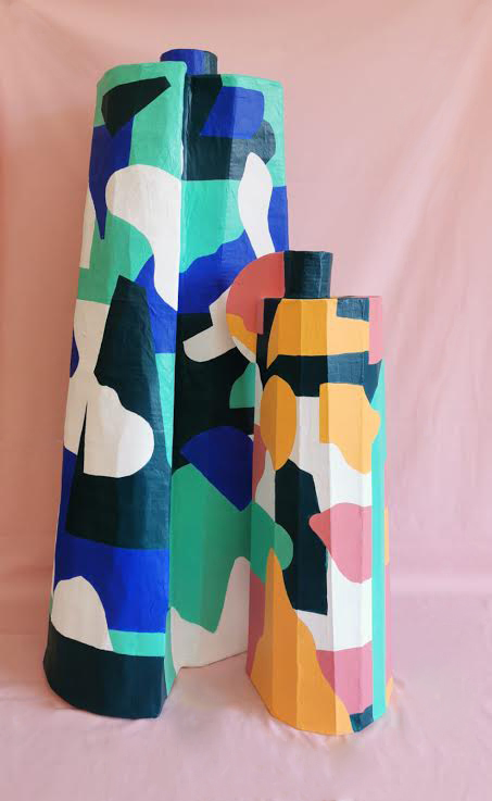 Depuis 2020, et pour encore longtemps, amies et artistes, nous nous sommes retrouvées autour d'une quinzaine de vases en papier mâché dont le plus grand mesure 1,40m.
